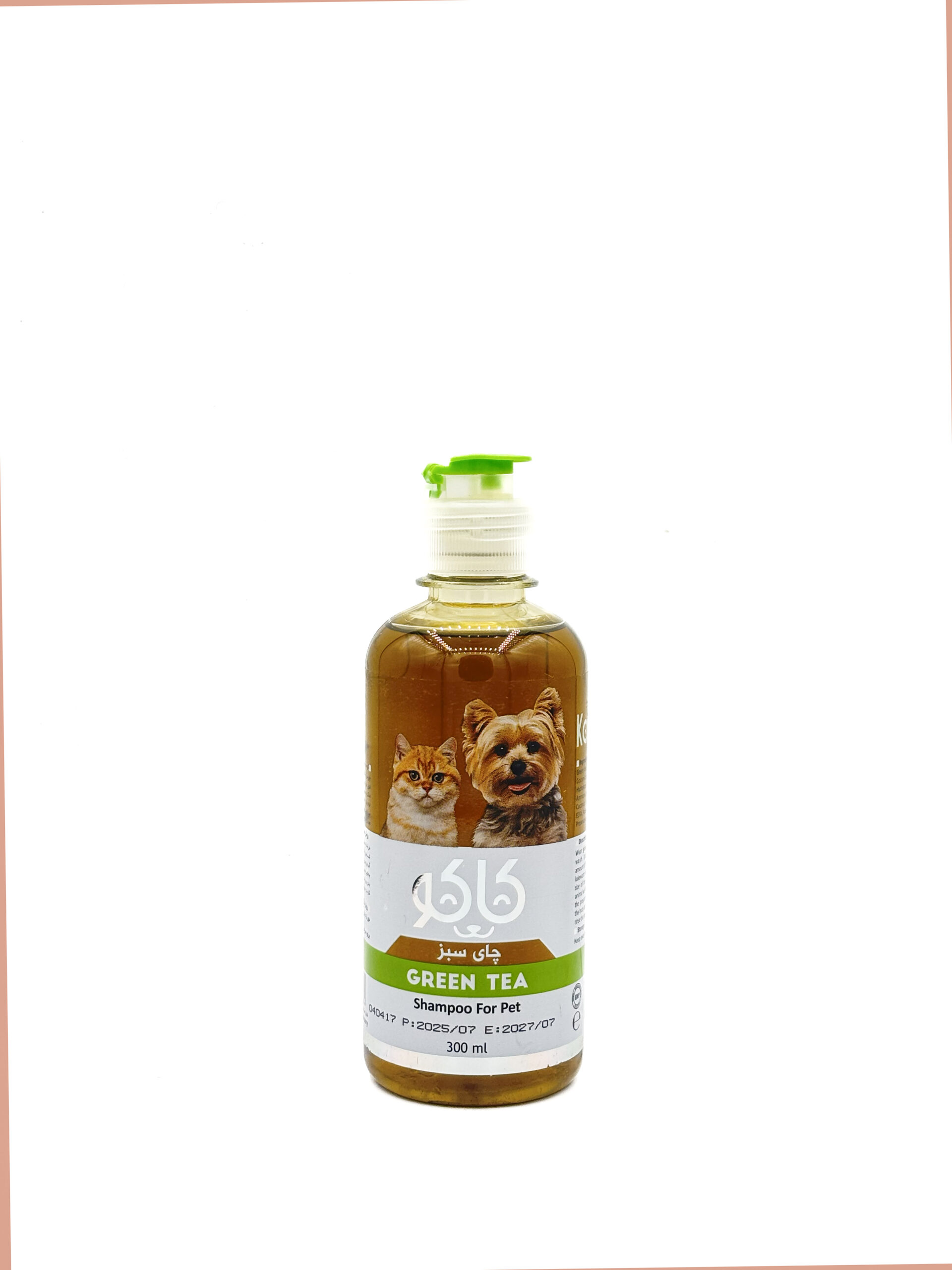 شامپو چای سبز کاکو، شامپو بهداشتی و مراقبتی ویژه سگ و گربه با رایحه طبیعی چای سبز و حجم ۳۰۰ میلیلیتر. این شامپو کاکو با فرمول ملایم و مواد اولیه طبیعی، پوست حساس حیوانات خانگی را تمیز و نرم میکند، موها را براق و خوشبو نگه میدارد، و به کنترل ریزش مو و جلوگیری از خشکی پوست کمک مینماید. رایحه دلپذیر و ماندگار چای سبز که حیوان و صاحبش را خوشحال میکند! مناسب برای استفاده منظم و همه نژادهای سگ و گربه. در پتی پت شاپ، شامپو سگ و گربه چای سبز کاکو اصل با قیمت مناسب و ضمانت اصالت موجود است. خرید آنلاین شامپو کاکو از ما، بهترین انتخاب برای بهداشت، نرمی مو و شادابی دوست چهارپا یا پشمالویتان – ارسال سریع به سراسر ایران!