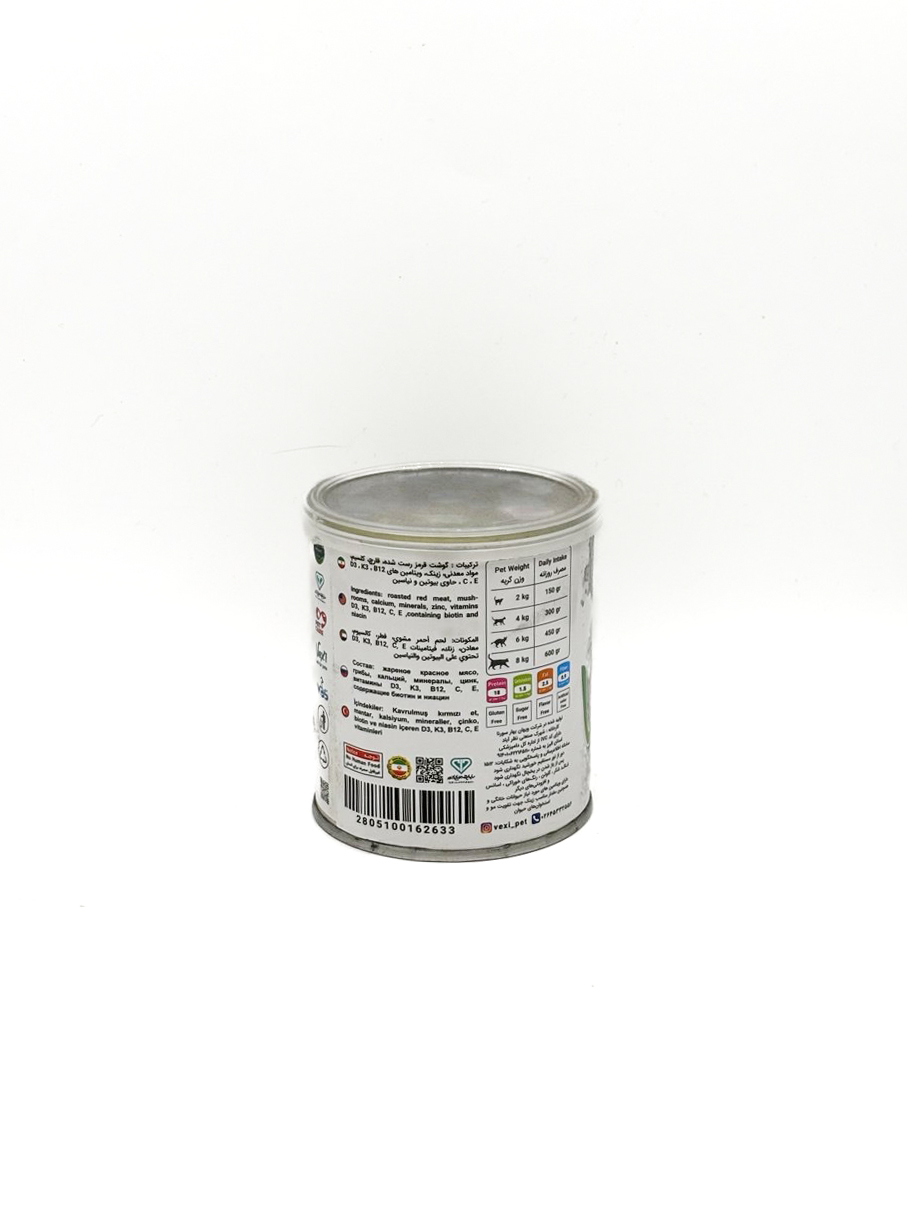 کنسرو غذای ارگانیک ۱۰۰% گوشت و قارچ وکسی