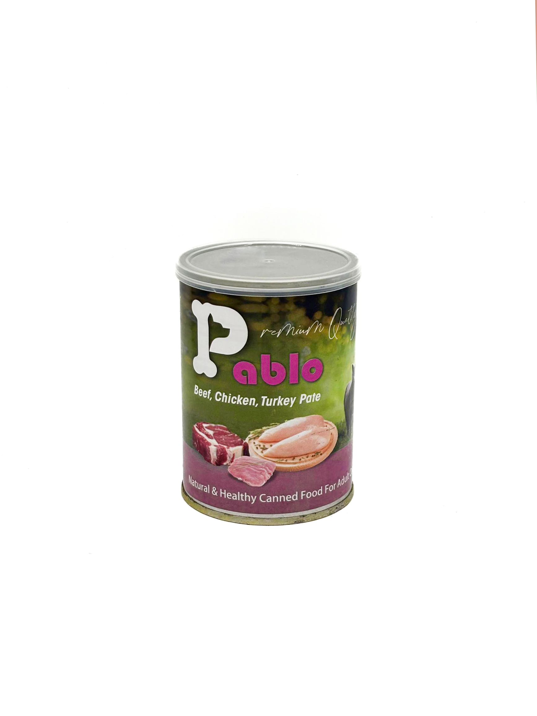 کنسرو پته گوشت گوساله، مرغ و بوقلمون پابلو، غذای تر طبیعی و سالم ویژه سگهای بالغ، تهیه شده از ترکیب گوشت گوساله، مرغ و بوقلمون تازه با کیفیت بالا. این کنسرو پابلو غنی از پروتئین حیوانی متنوع برای تقویت عضلات، انرژی پایدار، سلامت مفاصل، پوست براق و گوارش آسان سگ شما. بافت نرم پته با طعم غنی و ترکیبی دلپذیر که حتی سگهای بدغذا هم نمیتوانند در برابرش مقاومت کنند! در پتی پت شاپ، کنسرو سگ پابلو طعم گوساله، مرغ و بوقلمون اصل با قیمت مناسب و ضمانت اصالت موجود است. خرید آنلاین کنسرو پابلو از ما، بهترین انتخاب برای تغذیه کامل، خوشمزه و شادابی دوست چهارپای وفادارتان – ارسال سریع به سراسر ایران!